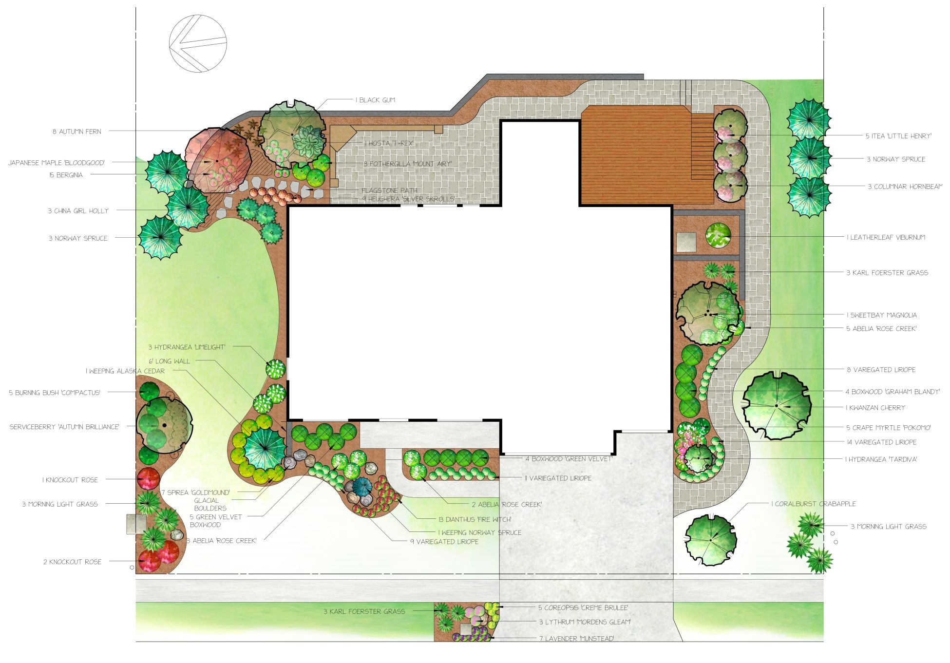Zaplanowanie i rozmieszczenie w ogrodzie drzew, krzewów i roślin. Przygotowanie miejsca na warzywniak i ziołownik.